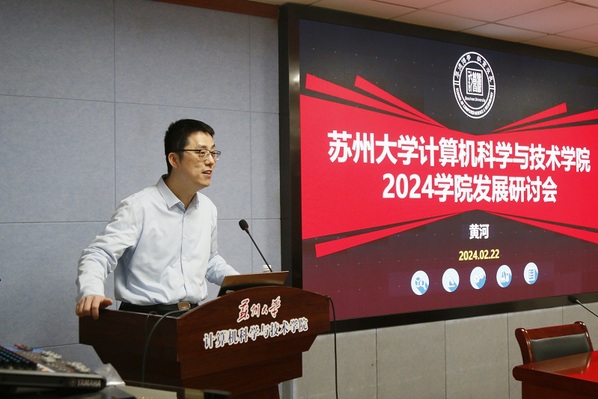 春风有信,花开有期,正当耕耘时。2024年2月22日,苏州大学计算机科学与技术学院在理工楼504会议室召开了2024年学科建设与发展工作研讨会。本次研讨会围绕学院“计算机科学与技术、软件工程”两个江苏省优势学科的四期建设任务,规划设计学院中长期规划实施方案,探索有“苏州大学计算机科学与技术学院特色”的“双一流”学科的高质量发展之路。学院党政领导、全体教授、研究中心负责人及办公室主任等参会,会议由计算机科学与技术学院副院长黄河教授主持。