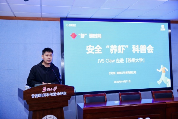 4月1日下午,由苏州大学计算机科学与技术学院与阿里云计算有限公司共同主办的“虾”课时间·JVSClaw走进苏州大学安全“养虾”科普会,在天赐庄校区理工楼504会议室成功举行。本次活动聚焦开源AI智能体OpenClaw(又称“龙虾”)技术普及与云上安全部署,面向全校师生、AI技术爱好者及苏大CCF分会成员开展专题教学。