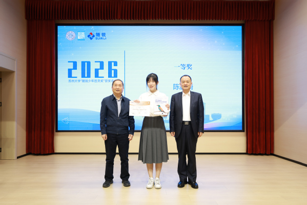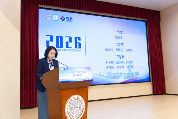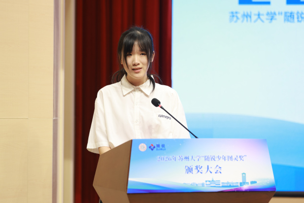 陈国凤宣读2026年苏州大学“随锐少年图灵奖”获奖名单。咨询委员会专家、企业代表为获奖学生颁发证书。2023级图灵班陈顾漪作为获奖学生代表发言,分享了在图灵班的学习成长与科研实践经历,展现了图灵班学子积极向上、勇于探索的精神风貌。