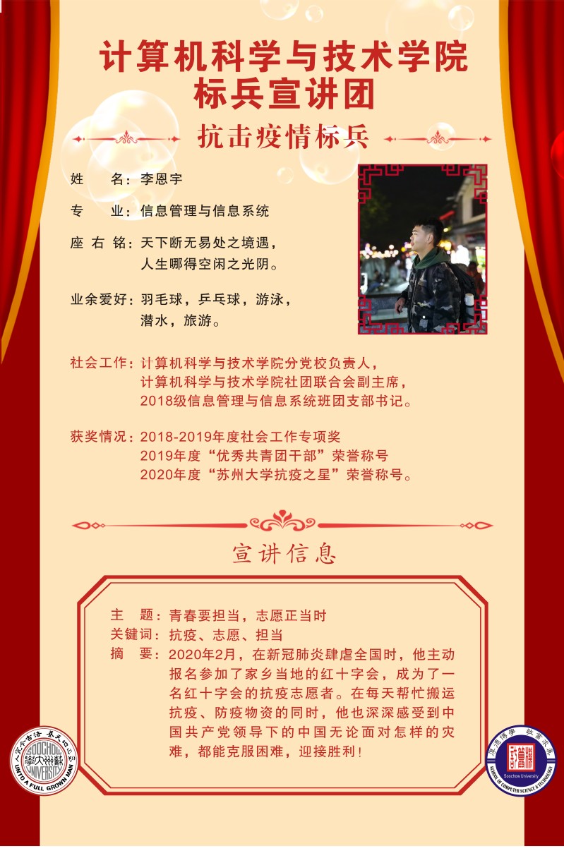 计算机科学与技术学院标兵宣讲团——抗击疫情标兵——李恩宇