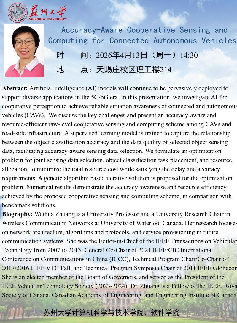学术报告:Accuracy-Aware Cooperative Sensing and Computing for Connected Autonomous Vehicles