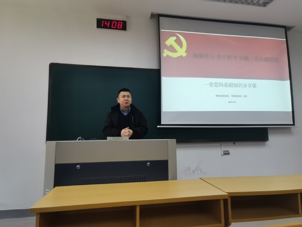 在接下来的环节中,王栋为各位参加分党校的学员们带来了一场关于党的基础知识的分享课程。以“加强学习 勇于担当 争做一名合格党员”为主题,分享课旨在为学员们补充党的基础知识,并介绍相关的学习平台,呼吁他们积极深入了解党的相关知识。为了帮助学员们更清晰地规划自己的未来,王栋详细解读了党对预备党员的教育及考察要求以及相关流程,同时深入探讨了党建“双创”的实施背景和基本条件,并向学员们提出了以党为中心,提升个人政治觉悟和政治素养,将理论与实践相结合的具体要求。