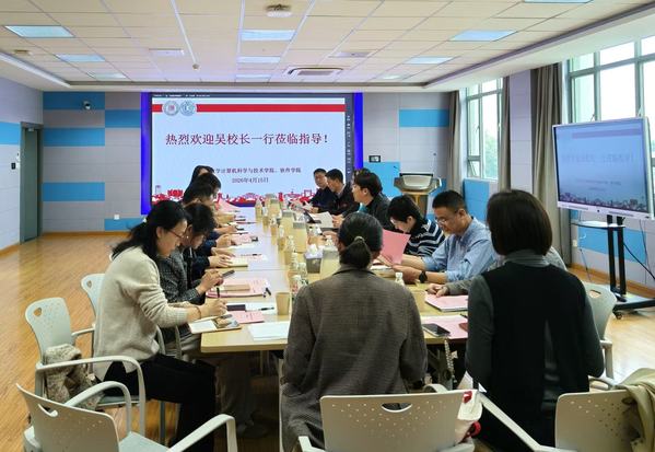 为深入推进学科、学位点、专业一体化建设,精准把脉学院发展实情、破解建设难题,2026年4月15日下午,副校长吴嘉炜一行赴计算机科学与技术学院、软件学院开展专题调研。学院党委书记陈国凤、院长黄河及学院领导班子成员,学校学科建设与发展规划处、人力资源处、教务处、研究生院、科学技术研究院等相关职能部门负责人陪同调研并参会。会议由学科建设与发展规划处处长陈涛主持。