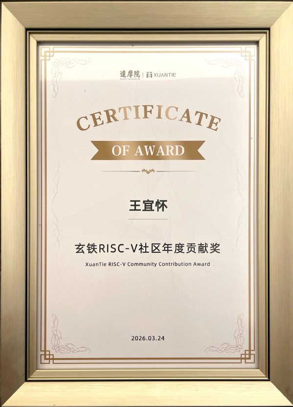 近日,以开放・连接为主题的2026玄铁RISCV生态大会在上海成功举办。大会现场揭晓玄铁社区开源贡献者年度榜单,我院王宜怀教授凭借在国产嵌入式处理器、RISCV架构教学与产学研生态建设等方面的突出贡献,成功入选并获颁玄铁 RISCV社区年度贡献奖,成为高校学者助力国产RISCV生态的典型代表。