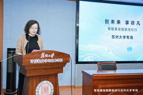 4月13日下午,“2024智能基座鲲鹏高校行”——苏州大学专场活动圆满举行。本次活动由华为技术有限公司主办,计算机科学与技术学院、软件学院,江苏鲲鹏·昇腾生态创新中心协办,华为相关技术人员及学院师生代表出席活动。本次活动以主题报告、鲲鹏课堂为核心,旨在通过鲲鹏计算机产业生态介绍与鲲鹏相关技术分享,引导师生深入了解鲲鹏及计算产业发展趋势,使得师生对开源社区及开发者要求有更加充分的认识,助力校企双方开启“智能基座2.0”建设阶段。