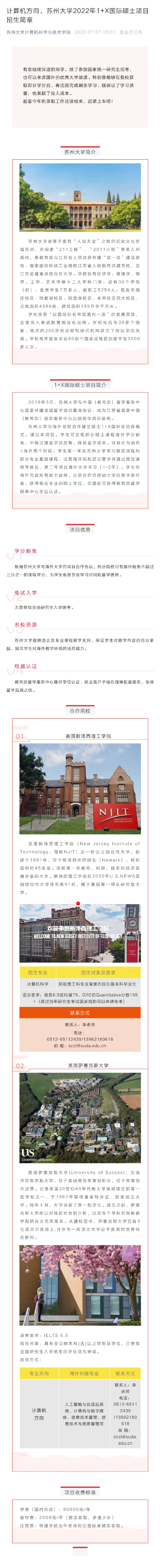苏州大学计算机科学与技术学院2022年1+X国际硕士项目招生简章