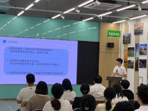 交流会上,“手绘发电站”、“流量致富”、“碧水蓝天”“暑期托班”等四支社会实践团组长一一汇报了两周时间在食宿电站村进行暑期社会实践的内容和成果。“本次学院组织的实践活动,苏大学子们见证了一个社会主义新农村的发展历程,在一个具体的例子中切实感受到了乡村振兴的逐步落实。虽然实践活动时间短暂,但却是深埋了一颗‘助力乡村,扎根基层’的种子。”“手绘发电站”实践团队长王天轶同学这样说道。