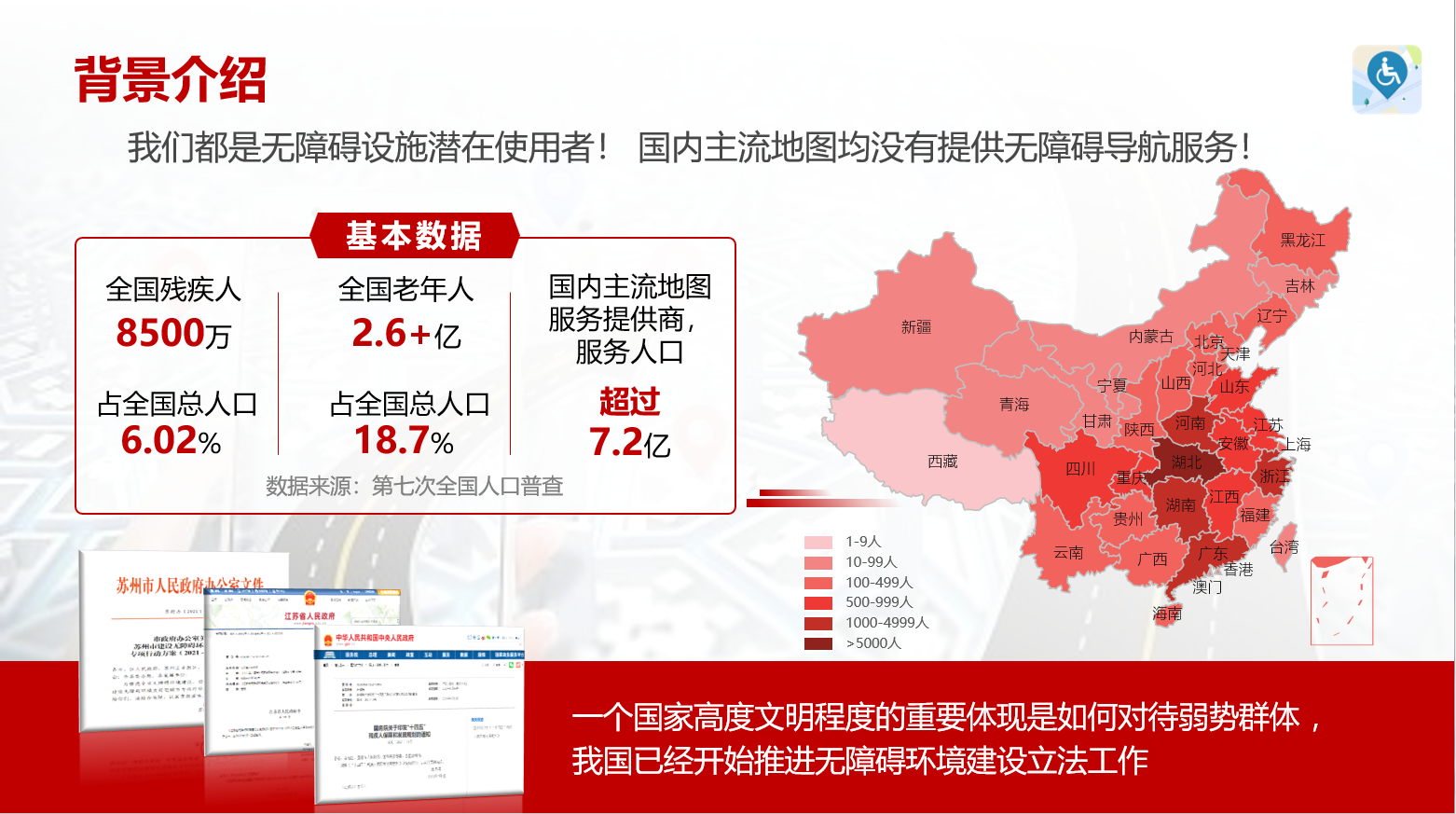 智行无碍旨在解决当下出行障碍人士的“出行难”问题,团队经过调研发现,关于无障碍信息目前存在两大痛点,一是无障碍设施维护低效,政府投入大量资金进行了无障碍设施建设,但设施面临着被占用,或设施早已损坏等问题;二是设施与使用者信息不对称,即使无障碍设施众多,但出行障碍人群不了解无障碍设施的具体分布以及如何到达导致出行困难。