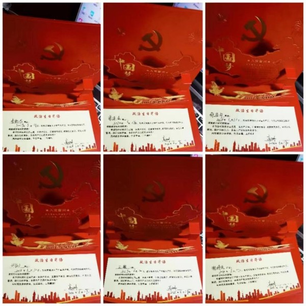 研究生党支部在党委的号召下在线上开展了“红色祝福强党性,政治生日忆初心” 主题党日活动,向入党纪念日的同学们赠送红色贺卡,庆祝政治生日。一张小小的贺卡既是支部对党员同志的衷心祝福,也包含了对党员的殷切希望。
