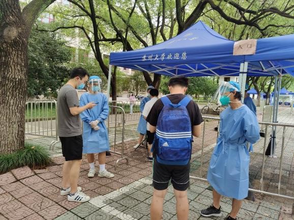 无惧酷暑,无畏高温,由于不间断的疫情,暑期在校学生以研究生为主,我院研究生志愿者主动承担了整个暑期核酸检测现场服务任务,配合医务人员认真做好扫码登记、身份信息确认、现场秩序维护、注意事项讲解等工作,大家各司其职,检测现场井然有序,彰显了志愿者的理想信念和责任担当。全院共有55位研究生付出了165小时的核酸志愿者服务。