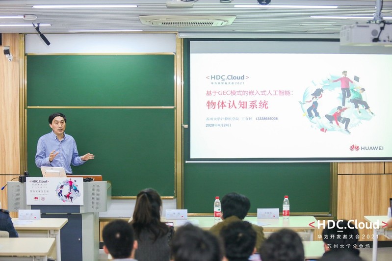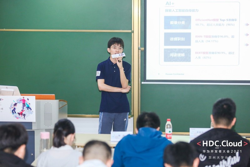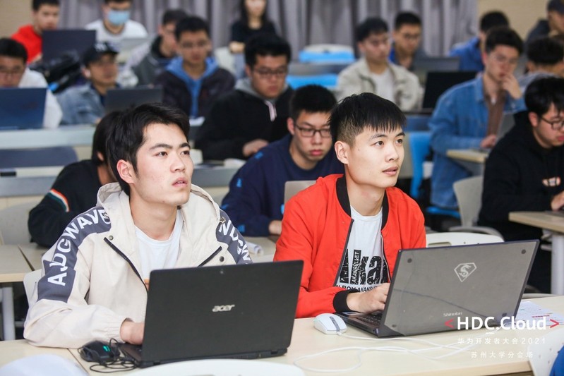 以云和AI为核心的全场景智慧时代正在加速到来,各行各业将通过新技术进行数字化转型,重构体验、优化流程、使能创新,打造面向未来的核心竞争力。2021年4月24日苏州大学计算机科学与技术学院同华为昇腾在博远楼301室开展了华为开发者大会2021(cloud)苏州大学分会场活动,同学们进行了一次线上线下全场景会议之旅。