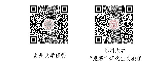 团委将于9月5日12:00(腾讯会议号:153720324)组织“惠寒”研究生支教团招募宣讲会,请感兴趣的同学线上参与。关于“惠寒”研究生支教团的信息可关注“苏州大学团委”“苏大惠寒研支团”微信公众号获取。