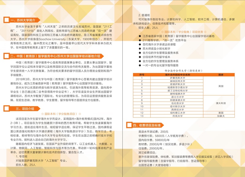 2020年苏州大学出国留学培训基地项目软件方向2+2国际本科(含AI专项班)