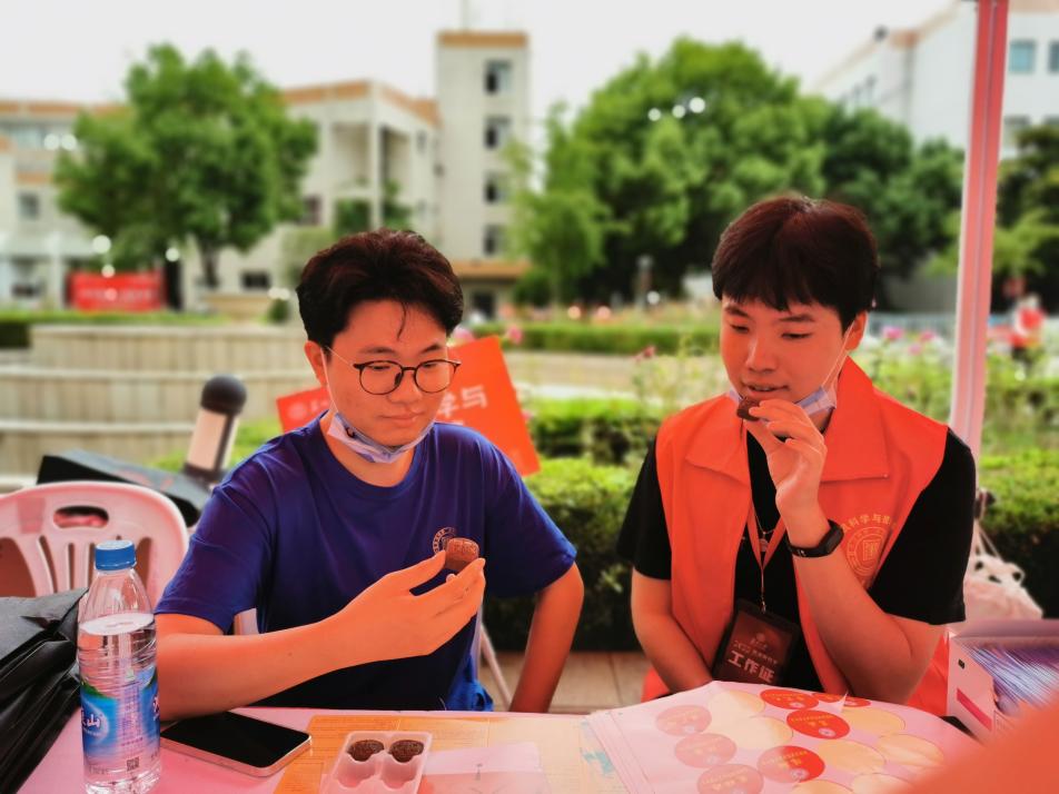 3、迎新过程中,有一位同学报到后见到各位志愿者非常辛苦,立即将带来的家乡点心送给志愿者品尝,并表示愿意加入志愿服务队伍。考虑到疫情防控工作,学院还是让新同学先回宿舍休息,但是大家觉得非常暖心,为这位同学点赞!