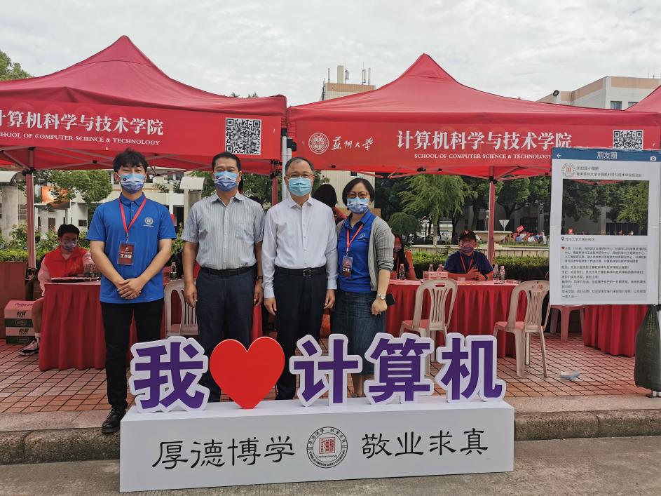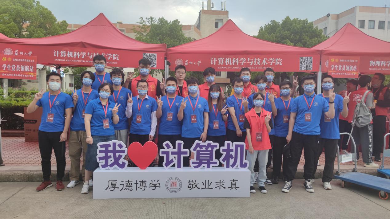 学院在25日与27日每日各安排了两批志愿者,一批负责在苏州站与苏州北站接站,一批负责校内的迎接工作。车站接应的同学们身着红色服装,而在校接应的师生们身着定制的“计算机蓝”T恤,富有青春活力。大家分工明确,团结协作,对每一个细节都精益求精,在效率、质量两不误的情况下圆满完成了服务任务。