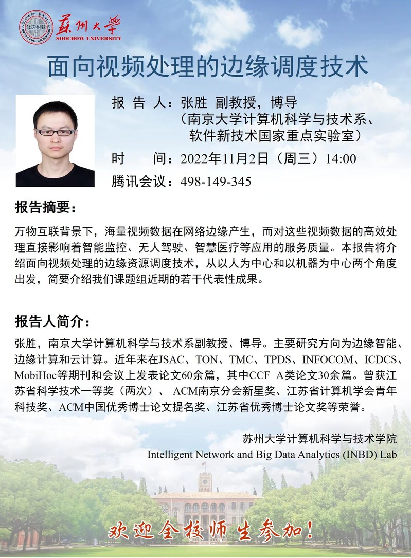 报告题目:面向视频处理的边缘调度技术