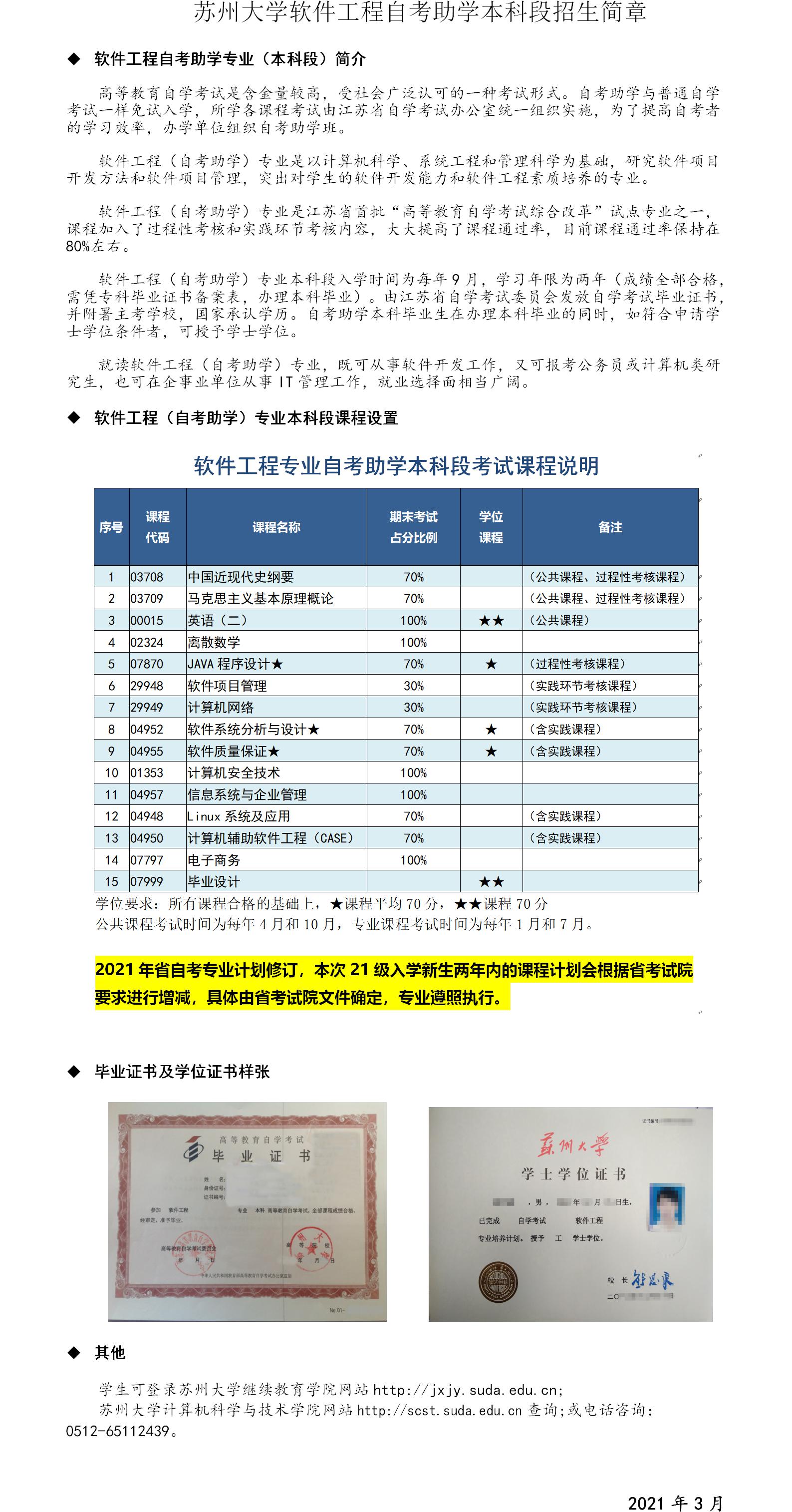 2021年度苏州大学软件工程自考助学本科段招生简章