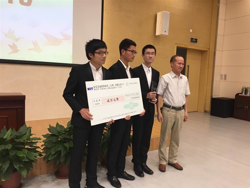 2017江苏地区NIIT程序设计大赛总决赛于2017年6月3日在南京邮电大学(仙林校区)隆重举行。计算机科学与技术学院本科生王大木、王俊、李朝锡三名同学组成的“晓木”小组在总决赛中表现突出,获得二等奖并得到组委会颁发的2000元比赛奖金。