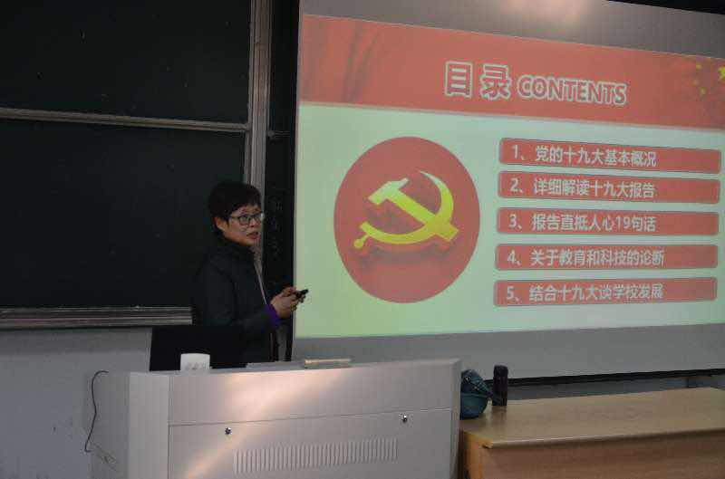 2017年11月15日下午,学院党委举办学习贯彻党的十九大精神报告会,校党委副书记、副校长路建美教授应邀以 “不忘初心, 牢记使命——学习贯彻落实党的十九大精神”为题为我院全体教师及部分学生党员代表做了宣讲报告。报告会由学院党委书记杨礼富研究员主持。