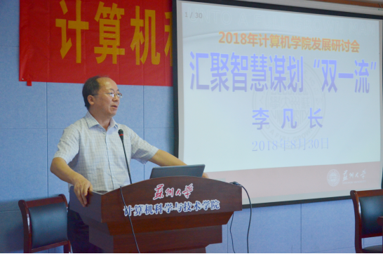 会上,李凡长院长作了题为《汇聚智慧谋划“双一流”》的工作报告,分析计算机学院相关学科、专业发展现状,介绍学院多维度协同发展理念指引下取得的一系列成果,提出学科、专业在发展过程中的存在问题,给出学院的机制、方法、路径优化举措。