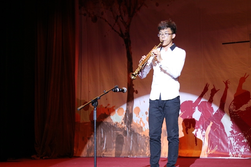 随着强劲的鼓声响起,晚会在我院优秀社团——FD音乐社的《wherever you are》中拉开了帷幕。歌舞、小品、朗诵、乐器联奏等精彩的节目为观众呈现了丰盛的视听盛宴。独唱《贝加尔湖畔》旋律优美,引人入胜;小品《抢苹果》生动展现了大学生对亲情、友情的珍惜和感动;诗朗诵《青春赞歌》蕴含着对青春、大学生活的憧憬与赞叹;幻视幻听的魔术表演为晚会带来了欢乐而神秘的气息;《成都》、《追光者》、《奇妙能力歌》以及《here comes the sun》这四个吉他弹唱节目,将悠扬音符传播给现场每一位观众;由五星级社团——闲云剧社带来的小品《快与慢》展示着东方神秘的魅力;更有阿勒特乃的冬不拉表演《美丽的姑娘》向全体师生表达着深切的希望和祝福。整场晚会精彩不断,高潮迭起,赢得台下阵阵掌声,欢呼声一浪高过一浪。人工智能班赵嘉宁同学的萨克斯独奏《See you again》为本场晚会划上了圆满的句号。歌曲中饱含着同学铿锵自信和对未来的无限希望,绽放着青春与梦想的光芒。