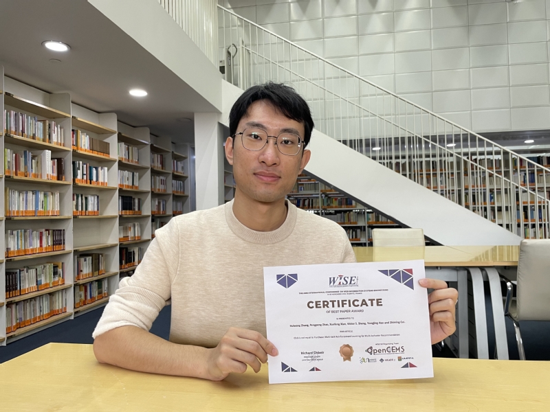 第23届网络信息系统工程国际会议(Web Information Systems Engineering,WISE 2022)于2022年11月1日至3日在法国比亚里茨成功召开。我院数据科学与工业软件研究团队2020级硕士张惠旺为第一作者、赵朋朋教授为通讯作者的论文“Click is Not Equal to Purchase: Multi-task Reinforcement Learning for Multi-behavior Recommendation”获得会议最佳论文奖。