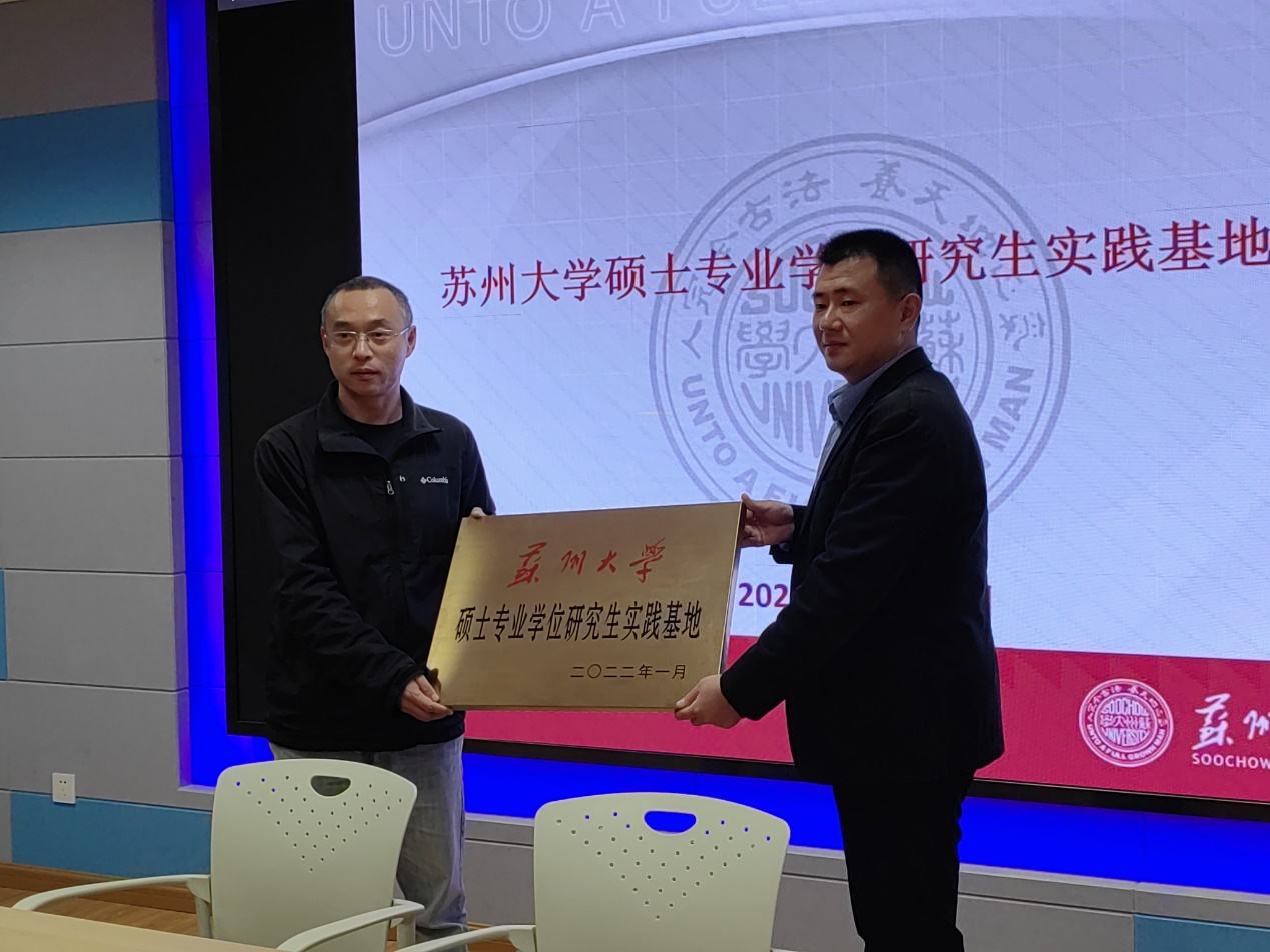 苏州沃柯雷克智能系统有限公司和我院刁红军老师共同申报了苏州大学硕士专业学位研究生实践基地,在研究生培养上共同发力,给学生提供实习实践机会,赵雷副院长为苏州沃柯雷克智能系统有限公司授了牌。