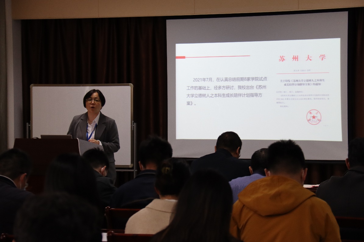 随后,李恩秀就学校文件精神、学院实施方案、落实工作要求、2021级实施情况和学校考核要求等五个方面,条理清晰地做好工作部署与动员。她强调,导师们要按照要求线上线下积极开展与学生的互动和交流,增进师生感情、向学生传递导师的关爱,把学生工作做细做实,努力成为其学习、生活、人生成长的指路人和引导者,助力我院新生全面发展成长成才。