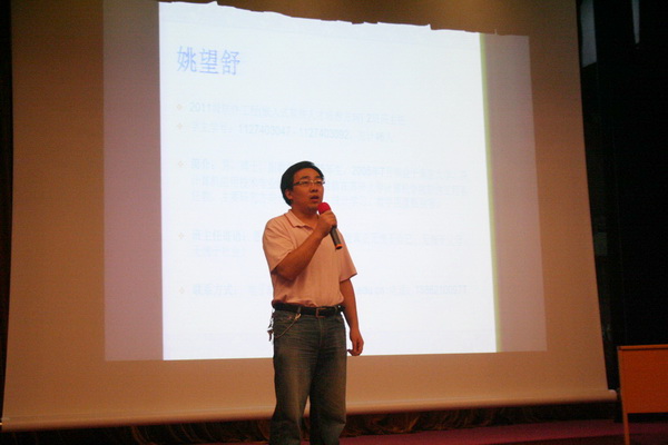 大会伊始,许书记代表学院对新生家长和同学们的到来表示欢迎,详细介绍了2011级各班的班主任组成情况,接着每位班主任都上台发表了热情洋溢的讲话,各位班主任都表示肯定会努力帮助2011级学生在大学里成长、成才和成功。