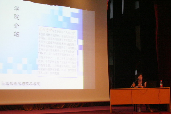 当最后一场暴雨将要送走一个火热的夏,苏州大学的古老校园里到处弥漫着热情的气息。2011年8月27日苏州大学计算机科学与技术学院一派忙碌和欣喜,2011级新生陆续到校报到,下午四点在苏州大学本部大礼堂召开新生家长会,党委副书记、副院长许继芳、辅导员邝泉声、计算机学院各班级班主任、各位新生和家长共同出席了本次会议,会议由辅导员邝泉声老师主持。