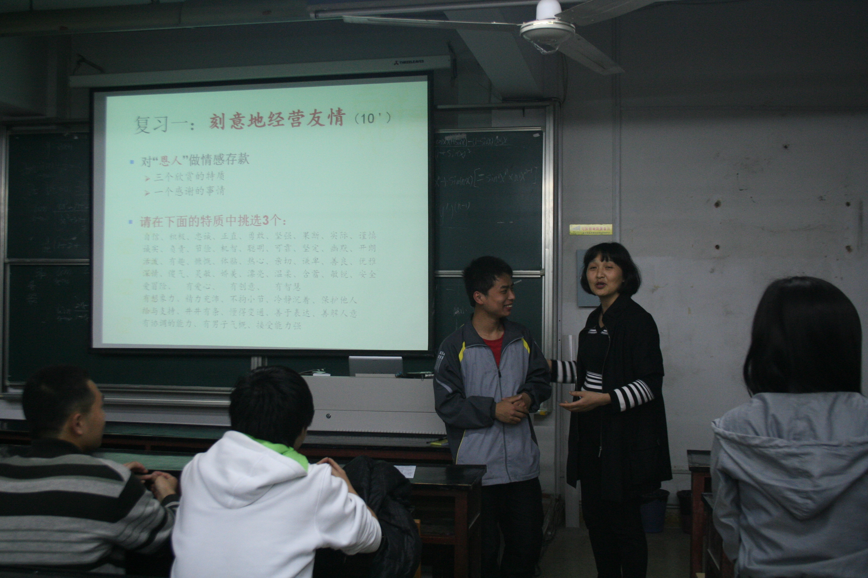 和第一期的“亲密之旅”一样,翟老师仍然通过与学生的积极互动,调动起现场的氛围。翟老师通过对上一次讲座的回顾,她又提出了新一轮的“情感存款”——刻意经营友情。翟老师提到,我们需要不断巩固身边的友情,进行“情感的存款”,友情才能走的更长久。那么我们怎样才能有效地“存款”呢?“秘诀就是了解差异和冲突。”
