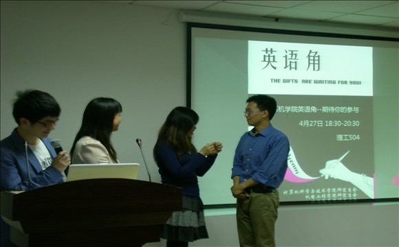 “Good evening everyone, welcome to our English Corner!”4月27日晚六点半,伴随着主持人一口流利的英语,计算机科学与技术学院在理工楼504迎来了新一期的英语角活动。本次活动有幸邀请了机电工程学院和外国语学院的部分研究生英语爱好者前来参加。