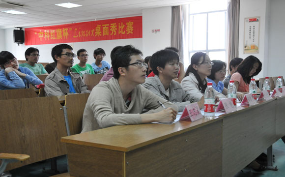 5月23日下午1点,由计算机科学与技术学院团委、研究生分会、学生会共同举办的“中科红旗杯”Linux桌面秀活动于理工楼103顺利拉开序幕。计算机科学与技术学院学生办公室老师、研究生辅导员何书萍老师,研究生分会主席邹黎君同学,学生会副主席范宁宁同学以及优秀研究生代表应邀出席。此次活动也吸引了大批Linux爱好者的参加。参赛选手现场演示的桌面秀极富动感和个性,引得在场观众惊叹连连。