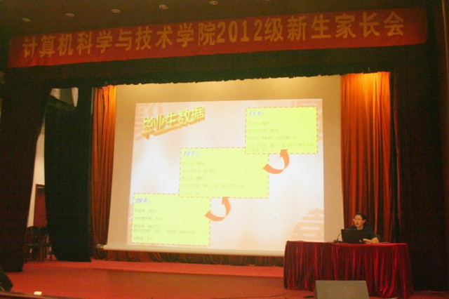 金秋九月,硕果累累。满载青春梦想的新生们开始步入校园,为苏大注入了新的活力。8月29日下午,计算机科学与技术学院2012级新生及家长见面会于敬贤堂如期举行。学院团委书记、新生辅导员张芸、2012级新生及其家长参加了会议。家长会由院党委书记、副院长沈云彩主讲。 沈云彩对到场的新生和家长们表示了诚挚的欢迎,同时感谢家长对学生多年的培育,让他们能够完成自己的大学梦想。在介绍了各位新生班主任后,沈云彩从历史沿袭、专业实力和师资力量等方面对学院的基本情况进行了详细阐述,还从主题教育、学生干部培训、校园科技文化活动、学生获奖和发表科研论文、就业等方面全方位地展示了学院学生工作。最后,沈书记再次对新生表达了殷切的期望及美好的祝福,希望新生们进入自己梦想的大学校园后仍能够怀揣一份对未来人生的梦想继续奋力前行,通过努力取得优异的成绩。 通过此次家长会的召开,让学院和家长加强了沟通,增进了家长对学院的信任度,让家长对孩子的学习生活、就业情况有个大致了解。学院将会以最好的姿态接过家长手里的接力棒,对学生做到尽职尽责,为进入大学、离开家长羽翼保护的学生们创造一个美好的学习和生活环境。 |