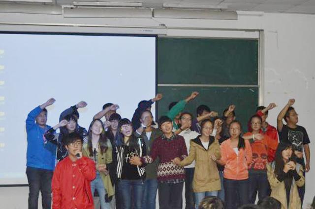 在主持人精彩的开场白之后,首先进行的是班徽展示。各班将设计好的班徽logo画到了T恤衫上,还通过ppt向与会同学们详细介绍其设计灵感与寓意等。大胆的构思,独特的想象,精湛的画技,绝伦的解说,引发了阵阵掌声。其中,信管班的展示员施雨同学凭借其抑扬顿挫的语调、滔滔不绝的阐述、丰富的肢体语言,更是给大家留下了深刻印象。在这个环节中,同学们充分发挥了灵动的创新精神,展现了青春独特的个性,表达了对集体的期望与祝愿。
