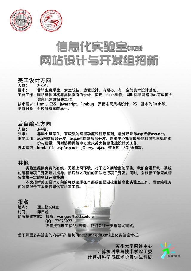 信息化实验室(本部)网站设计与开发组招新活动海报