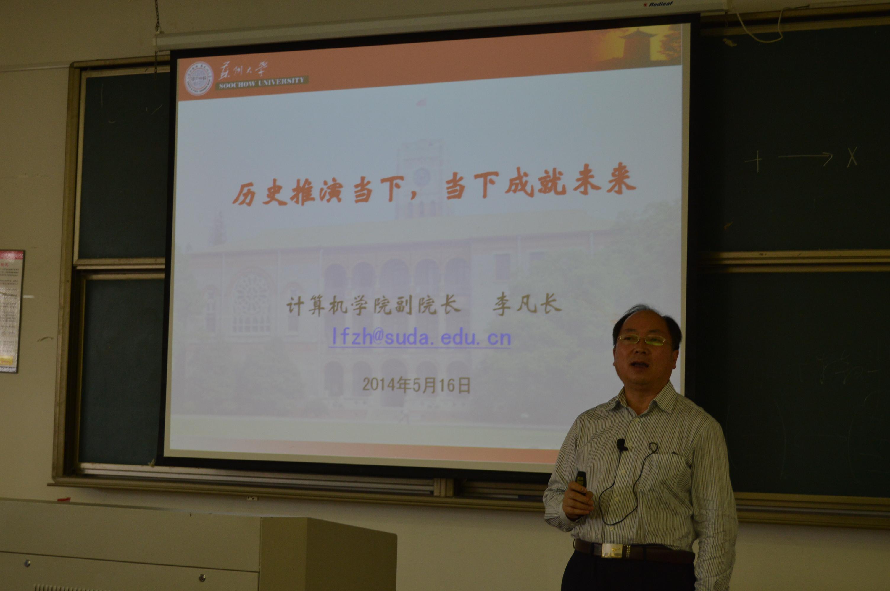 李院长表示,在我院学习计算机科学对我们学院的本科生来说,绝对是不二的选择。而我院在对同学们进行大力培养时,也需要同学们努力学习,一起为建设苏州大学贡献出自己的力量。他说,我们现在的目标是,有朝一日大家谈及苏州先想到苏州大学后再想到苏州,那就代表我校已然迈入了中国教育水平最高的高校行列了。近年来,我院研究生的就业率一直保持在100%,就业形势呈现出良好的趋势,就业单位包括百度、微软亚洲研究院、搜狗、阿里巴巴、淘宝、同花顺、飞思卡尔等一流大企业。