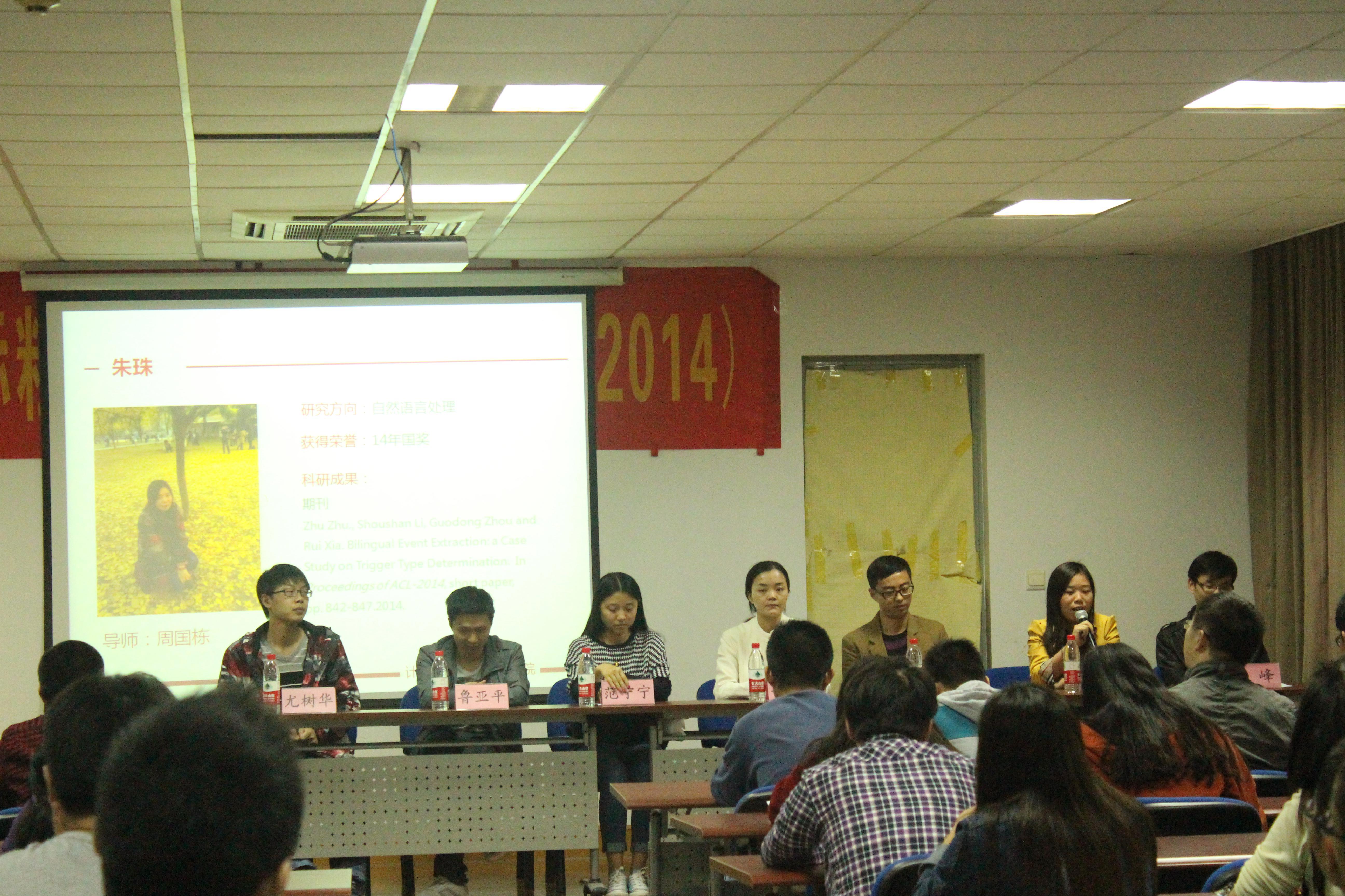 2014年10月21日由计算机科学与技术学院研究生分会办公室主办的“积极进取,开拓创新”新老生交流会,在我校理工楼504隆重举行。