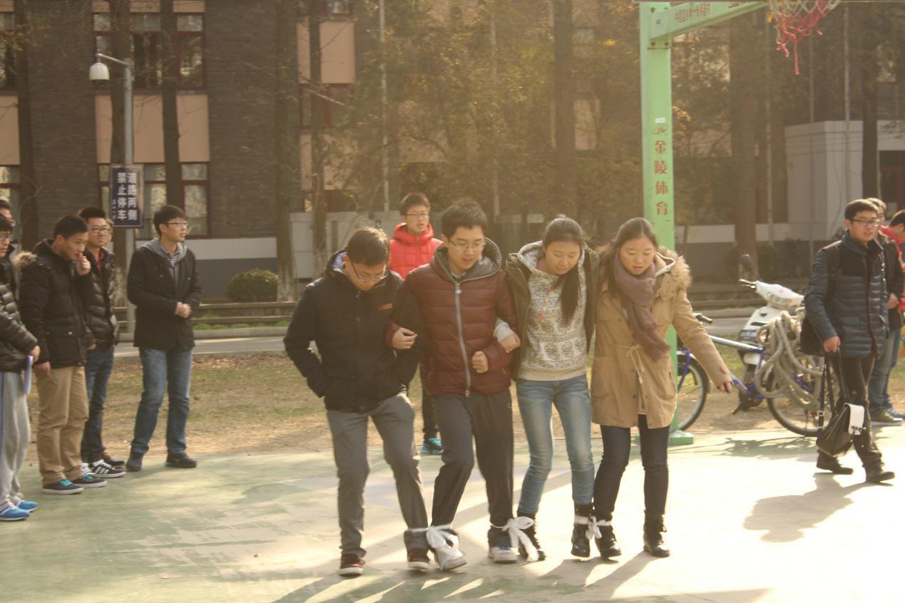 伴随着裁判的一声哨响,比赛正式开始,四个学院派出的六只代表队立即投入到紧张的比赛当中。首先进行的是四人五足的项目,虽然各队训练的时间有限,但是在队员们默契的配合下,都以较好的成绩完成了比赛。紧接着,在大家的欢笑声和加油呐喊声中,各个比赛项目都有序的进行着。