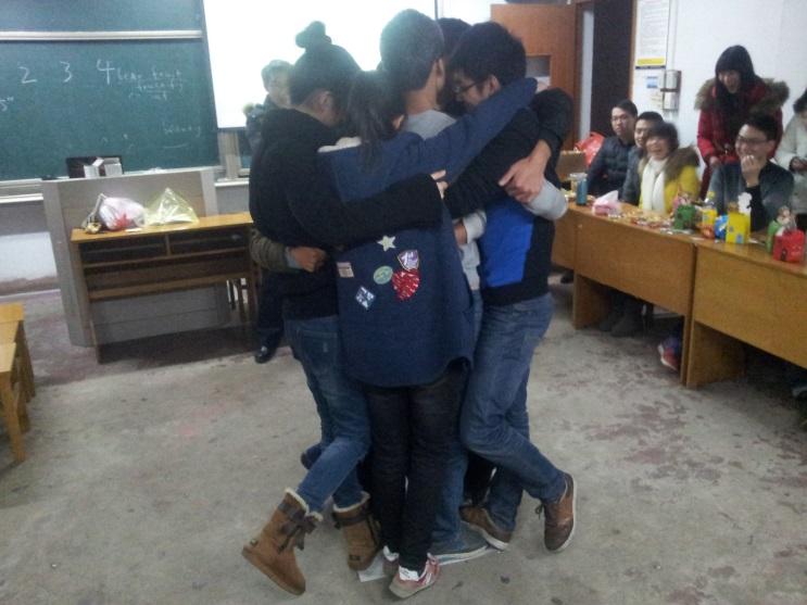 这里还有一个小小的插曲,班长按人数把我们分成了4大组,既为了防止有些关系比较要好的人坐一起而阻碍了与他人的交流,也为之后进行的游戏比赛环节埋下了伏笔。
