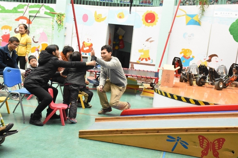 活动以游戏为主,共分为三大紧凑的模块。为了能够跟小朋友们尽快的熟悉起来,我们首先进行的是同学们熟悉的“接火车”游戏,义工和小朋友们依次排队,围着学校的场地转圈。在这个环节中,义工和小朋友们相互照面,相互打招呼,逐步熟悉起来。紧接着进行了小朋友们最喜爱的“你演我猜”环节。由义工轮流上去表演一种动物或是卡通人物,由下面的小朋友们根据表演去猜测。这个游戏使整个活动的气氛达到了高潮,小朋友们一个个争先恐后的举手发言,现场气氛热烈极了,看到下面的同学们笑的这么开心,老师和义工们也都由衷的露出了笑容。最后进行的游戏叫做“水果蹲”。虽然有的同学行动不便,但还是踊跃的报名参加了,在这个游戏中我们加入了一些惩罚措施,由犯规的一对搭档中的同学表演才艺,同学们载歌载舞的场景让人印象深刻。