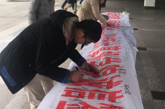 活动前期,我们通过微信、QQ等平台宣传,大力弘扬科学精神,明确研究生的学术要求和规范。积极推进和促进我校研究生学术道德与学风建设,营造良好的科学道德环境。活动当日中午11:00,我们在理工楼举办了以“恪守科学道德,推进学风建设”为主题的研究生学术诚信签名活动。号召广大研究生们,在诚信锦旗上签署自己的姓名,以表示我们“诚信学术”的坚定信念。