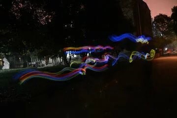 随后,同学们来到荧光物品提供处挑选荧光装饰物,例如荧光手环、荧光头箍、荧光眼镜。随着起点处的发令哨声响起,完成文化衫设计的同学们拉开了此次夜跑活动的帷幕,他们奔跑在校本部的小路上,绕着校园马拉松的路线开始跑步。