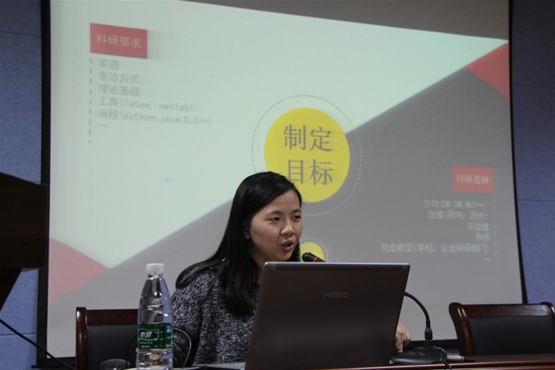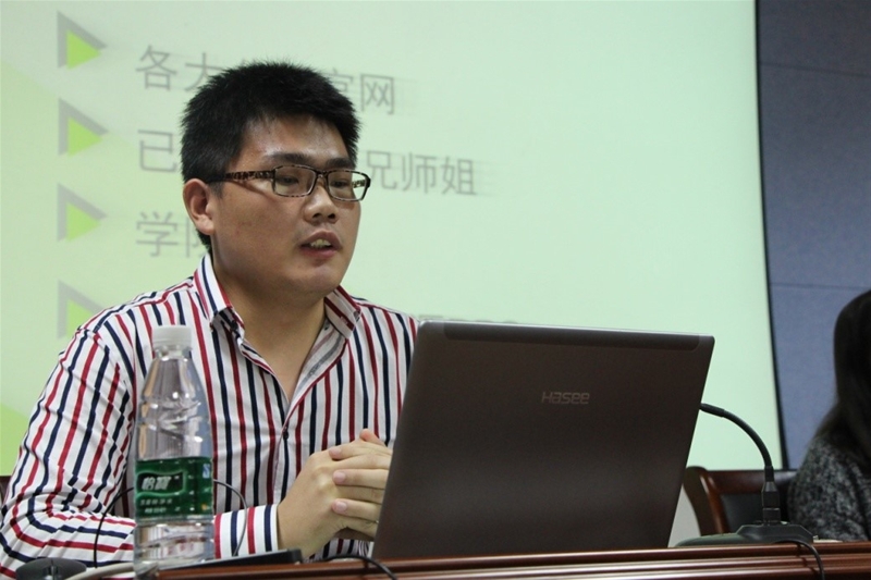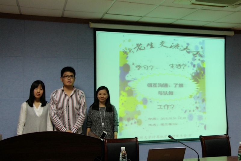 2016年10月26日晚6:30,计算机科学与技术学院研会在理工楼504举办了新老生经验交流会。该交流会的目的在于邀请师兄师姐给16级新生分享学习、科研和生活经验,帮助新生尽快适应研究生的自主生活学习模式,嘉宾有15级大数据挖掘方向研究生绪艳霞,15级机器学习方向研究生黄晓娟和14级高性能计算方向研究生杜满意,主办单位为计科院研会。