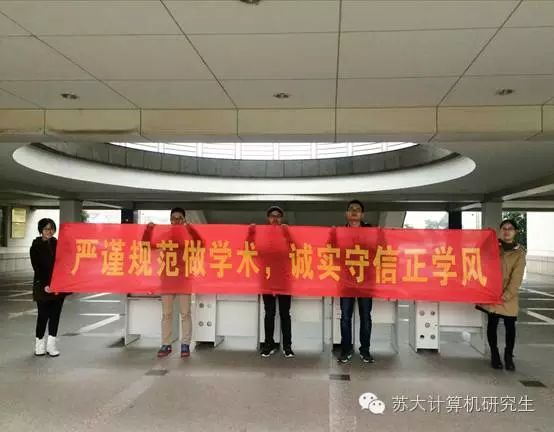 11月17日下午15点到16点半,学院研究生会在理工楼下举办了以“严谨规范做学术,诚实守信正学风”为主题的研究生学术诚信签名活动。研究生们纷纷在条幅上签上自己的承诺,表示诚信学术的坚定信念。通过这次活动全体研究生一致表示要发扬严谨踏实、力戒浮躁、坚忍不拔的学风以及追求真理、实事求是、大胆探索、传承拓新的科学精神。