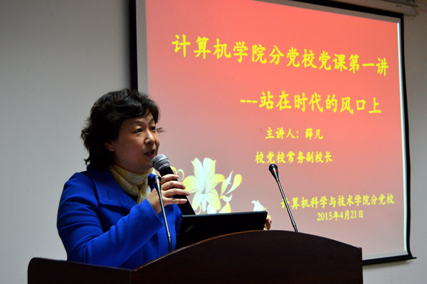 | 4月21日晚上,计算机科学与技术学院分党校在理工楼504开展党课培训。党课由校党校常务副校长薛凡主讲,主题为“站在时代的风口上”。学院全体辅导员、参加培训的全体入党积极分子和预备党员认真聆听了讲座。党课由院党委副书记、副院长沈云彩主持。 薛凡老师首先以时代的风口作为切入点,希望同学们要深入了解社会主义核心价值观的内涵和意义,在思想上更要契合社会的主流价值观和核心思想,与时俱进。薛凡老师从思想性、行动力两个维度出发,详细分析了中国共产党所具备的优秀特质,同时以十八大提出的实施创新驱动发展战略为例,指出实施创新驱动发展战略是适应世界科技革命和迎接竞争挑战的必然选择,进一步解放思想,加快科技体制改革步伐,打通从科技强到产业强、经济强、国家强的通道,为国家强盛、民族复兴提供有力的科技支撑和动力源泉。她希望同学们“站在时代的风口上”,要结合计算机学院的专业特色,培养较强的专业前瞻性。 薛凡老师立足于同学们的学习生活实际,分析了国际互联网的飞速发展给我们带来的便捷。在O2O等线上线下模式飞速发展的今天,互联网可以帮助我们跟随、关注到任何个体或对象,在学习、科研等方面提供强有力的支撑。她重点介绍了闭环理论,外环是what,即对事物要有一定的认知度;中间是how,明白如何去完成一件事;中心部分最深层的是why,即某件事物的根本意义、如何去完成。这一理论引发了学员们的思考。 最后薛凡老师阐述了习近平“一带一路”——“丝绸之路经济带”和“21世纪海上丝绸之路”的战略构想,这一跨越时空的宏伟构想,承接古今,借用古代“丝绸之路”的历史符号,高举和平发展的旗帜,主动地发展与沿线国家的经济合作伙伴关系,共同打造政治互信、经济融合、文化包容的利益共同体、命运共同体和责任共同体。“一带一路”传承了古丝绸之路精神,又顺应和平、发展、合作、共赢的21世纪时代潮流,将“中国梦”与“世界梦”进行有机地衔接,具有深远的战略意义和全球性影响力。 薛校长的整个党课围绕时代风口的主题,思想性和行动力贯穿始终。在座学员都纷纷表示受到了很大启发,通过党课加深了对党的政策和理论知识的理解,提升了思想层次,增强了党性修养。 |