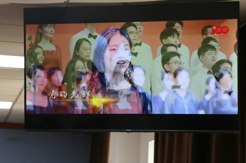 宣誓完毕后,伴随着苏大原创MV,老师和学生们齐唱《唱支山歌给党听》,以此献礼党的百年华诞。