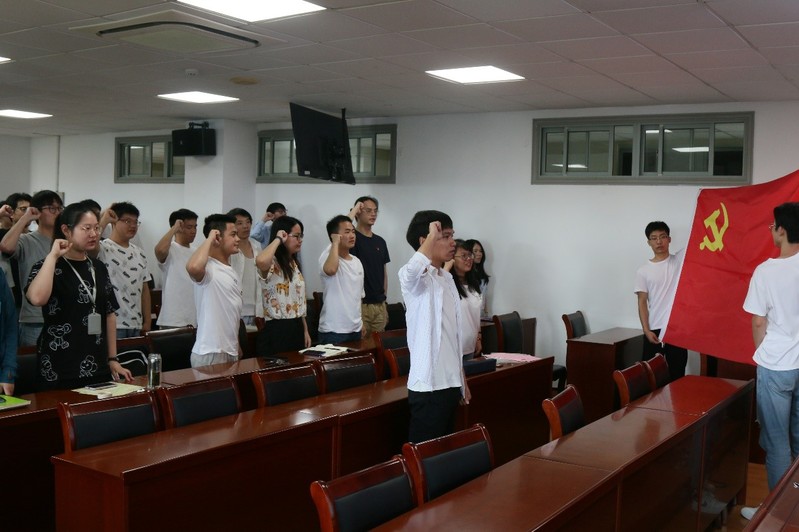 紧接着进入大会第四项议程,新党员入党宣誓,老党员重温入党誓词。党员们全体起立,在领誓同学的带领下,庄重大声地宣读了入党誓词,不忘入党初心。
