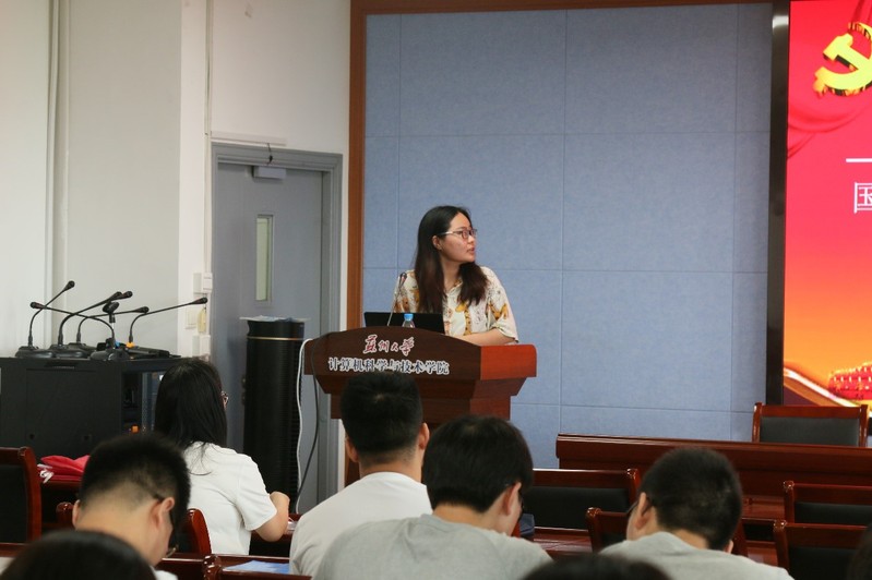 研究生辅导员高珊老师表示,此次观看庆祝大会直播全程,她深有感触,眼眶湿润。当习近平总书记提到中国的国际地位时,以前没有、现在没有、将来也不会称王称霸,但是我们也绝对不接受其他国家教师爷般的说教。如果有谁来侵犯我们的国家,那么我们14亿中国人民一定会让他碰的头破血流,听得让人热血沸腾。她提到,未来的中国需要科技的自立自强,作为计算机领域精英的我们,应是今后在科技强国战线上的奋斗者和佼佼者。她希望,所有的党员都能听党话,跟党走,系好人生的第一粒扣子,学好科技文化知识,树立科技强国意识,培养科技创新思维,打好扎实基础,解决我国在科学技术上被“卡脖子”的难题。