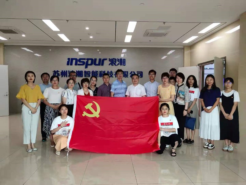 在签约仪式和学习“七一”讲话精神之后,与会人员赴苏州浪潮智能科技有限公司进行参观,与浪潮公司负责人就校企合作、人才培养、党建工作、产学研融合等问题进行深入交流。